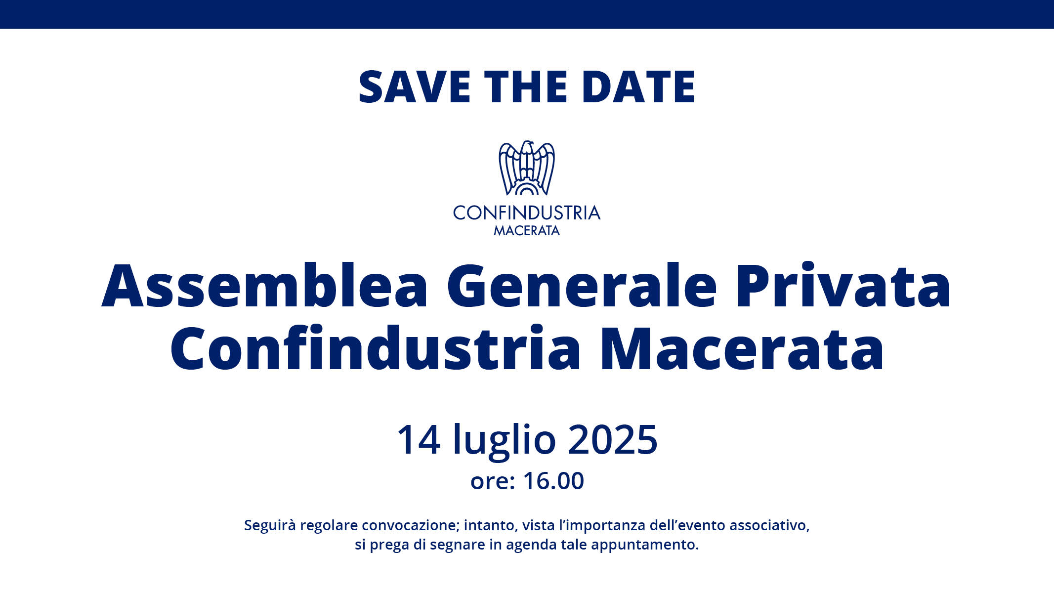 02 Luglio 2025 SAVE THE DATE - Assemblea Generale Privata Confindustria Macerata - 14 luglio 2025 Economia